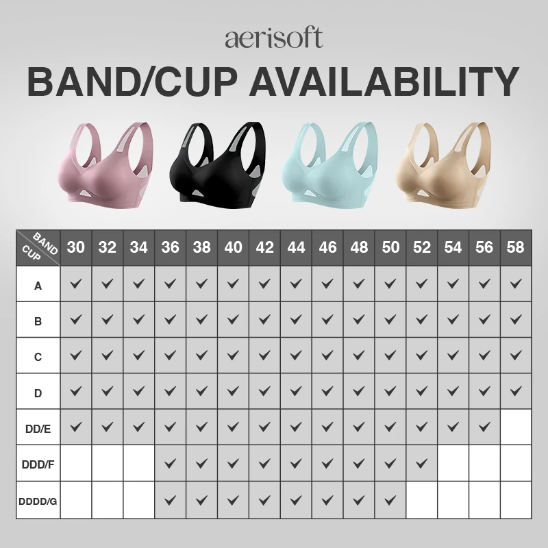 AeriSoft bra fits true to size, offering a comfortable and supportive fit. We recommend you select your regular size.