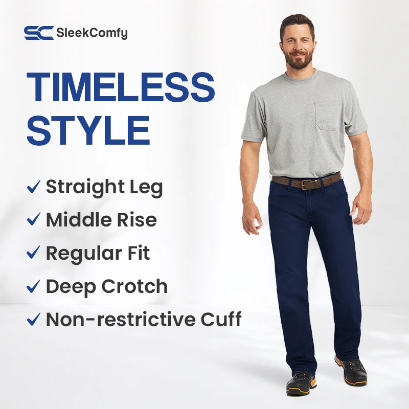 SleekComfy - All Day Comfort Straight Regular Fit Denim Trousers